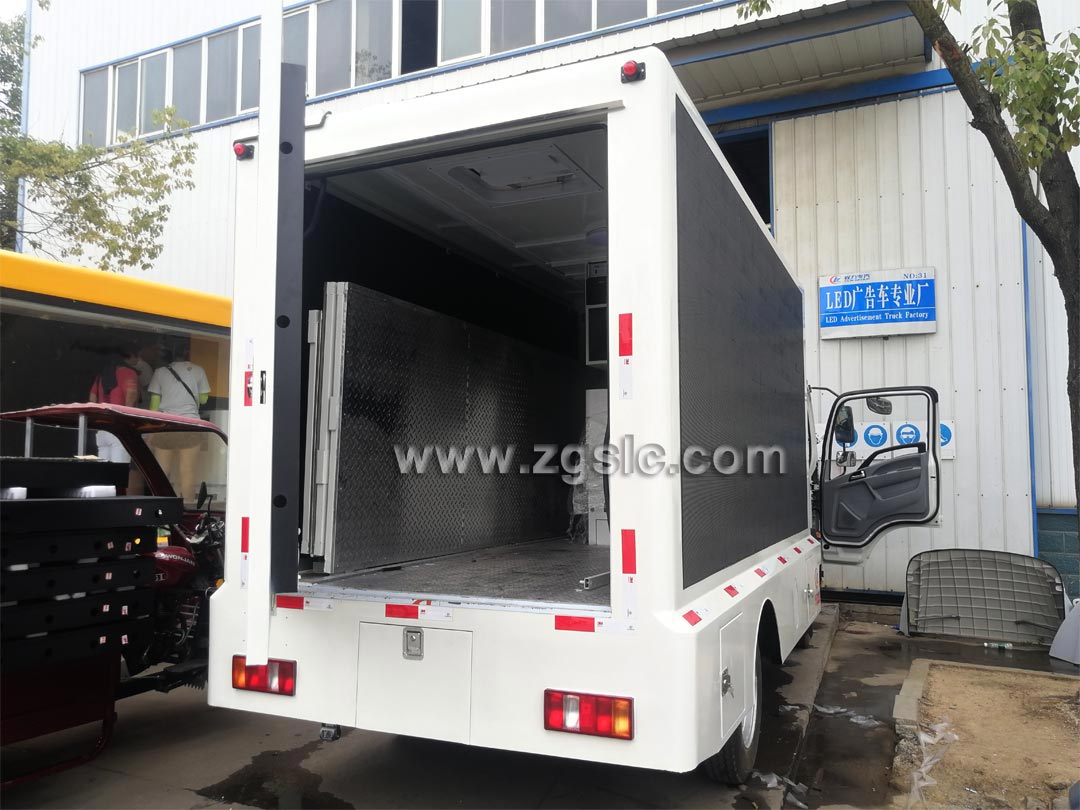| 上裝配置 | ★ LED廣告宣傳車,廣泛用于商業廣告宣傳,車體為廂式結構,左側板可升起,右側板則為一個滾動廣告燈箱。左側廂板裝配戶外全彩屏LED,性能穩定,耐沖擊。畫面立體逼真,清晰動感細膩。LED廣告宣傳車,適合做演唱會,大型晚會,大型塞事館外的直播平臺,也作為一個巡游車,房產開盤巡游車,以及作為展示平臺或廣告發布平臺。 ★ 一側全彩屏,另側帶字幕廣告燈箱;5cm復合鋼架廂體,外冷軋鋼板、內鋁板,配4個升降液壓支腿,高精度單側屏舉升,機電一體化控制;循環通風降溫系統;安全智能內外網配電切換系統,高性能靜音柴油發電機組,可滿足整個LED廣告車的用電需求;電腦智能2-7副燈畫切換;全防水高亮真彩車載LED精品屏,千兆流媒體控制系統。送:高配置工控電腦一臺,防水音箱2個,廣播級功放一臺,控制臺1個。 | ||