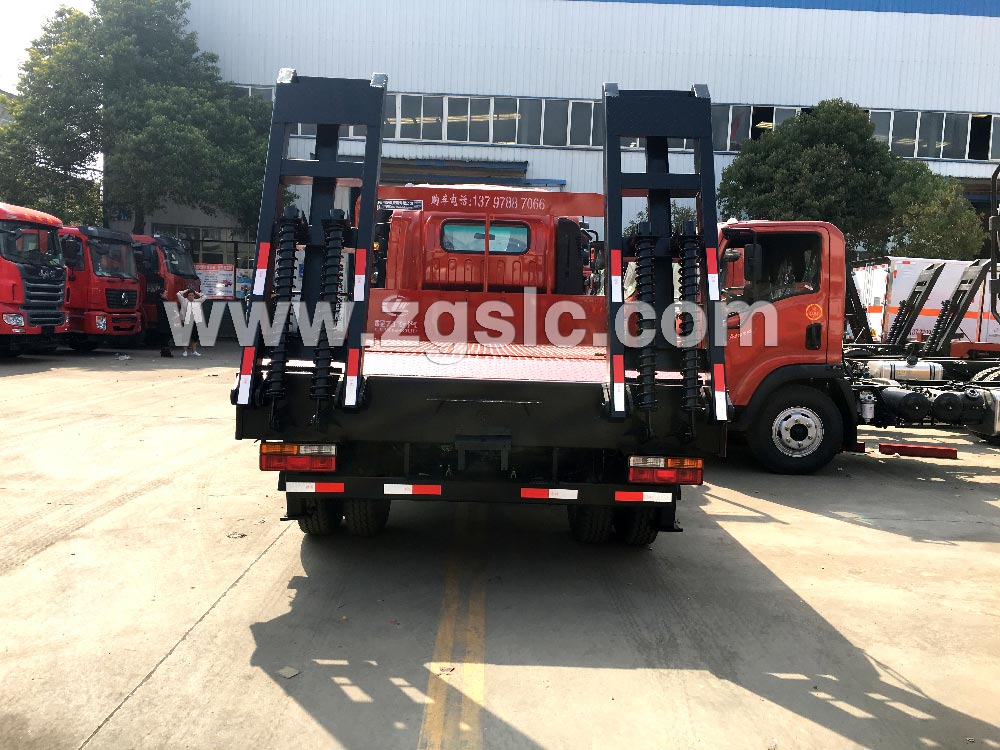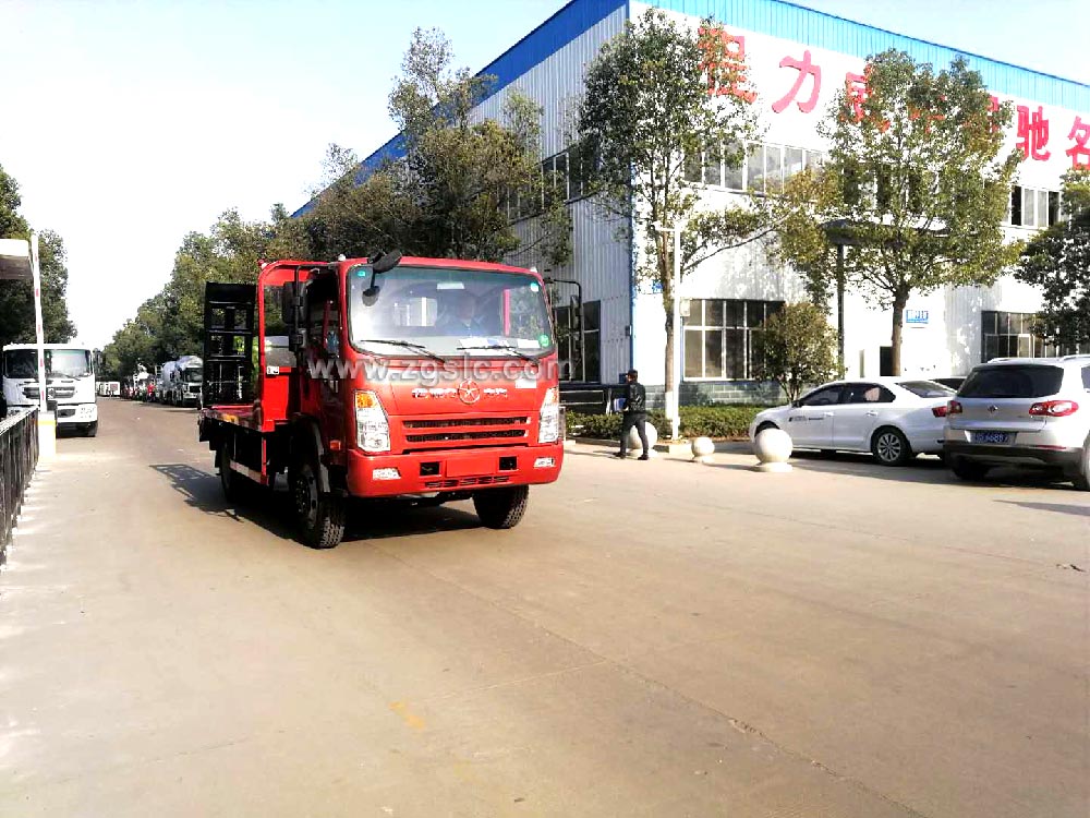 性能簡介 | ★ 大運平板運輸車車架低,承載能力大,使用壽命長。前輪可轉向,轉角達90°,在施工道路不平的情況下,能保持所有輪胎同時著地,保證車架和輪胎受力均衡合理,確保所載設備的安全。車輛裝有腳剎系統和手剎制動。車輛尾部安裝專用機械式半自動爬梯,履帶式工程設備可以自行上下平臺(無需其他任何起吊設備及輔助工具)直接與主車掛鉤連接。 | ||