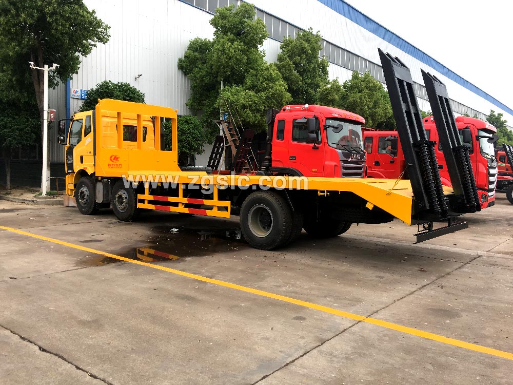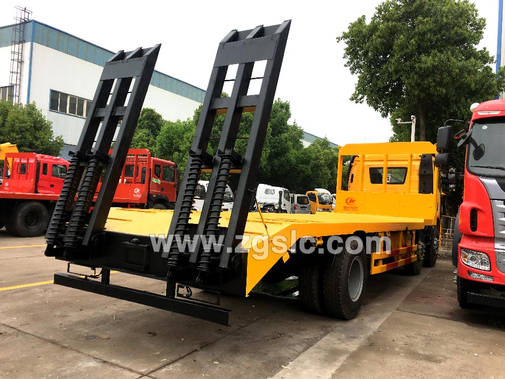 | 上裝配置 | ★ 解放小三軸平板運(yùn)輸車(chē)平板車(chē)專(zhuān)用底盤(pán),國(guó)五排放標(biāo)準(zhǔn)220大馬力發(fā)動(dòng)機(jī)。程力專(zhuān)汽生產(chǎn)的平板運(yùn)輸車(chē)主要用于運(yùn)輸挖掘機(jī),裝載機(jī),收割機(jī)等不可拆卸的工程機(jī)械,承重能力強(qiáng),廣泛用于工廠,工地等大型工程項(xiàng)目中。 ★ 平板面采用5mm厚國(guó)標(biāo)花紋板,橫梁采用100x100x5的國(guó)標(biāo)方管,橫梁加密,每300mm一根橫梁,邊框使用120槽鋼固定,平板運(yùn)輸車(chē)的承載能力更大,受力更均勻;尾部帶有雙彈簧爬梯和可折疊式支腿,爬梯上焊有16的螺旋鋼,板面上也焊有螺旋鋼,挖機(jī)上去的時(shí)候不會(huì)打滑,在挖機(jī)上去的時(shí)候?qū)⒅确畔拢?點(diǎn)著力,車(chē)頭不會(huì)翹起,安全性能更強(qiáng)。 | ||