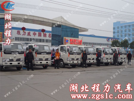 信息來源:湖北程力專用汽車有限公司 貴州都勻東勻汽車貿易有限公司1月份在湖北程力專用汽車有限公司訂購的6臺東風小霸王灑水車,用于地區抗旱救災,正月十五當天,伴隨著禮花聲,6臺小霸王灑水車排著整齊的隊伍駛出湖北程力集團大門準備開往貴州都勻。
