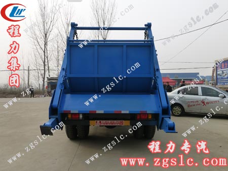 擺臂式垃圾車:擺臂垃圾車的特點是垃圾箱與車體分開,實現一車與多個垃圾箱的聯合使用,循環運輸。貨斗有方形和船形,方形用于地坑式,船形置于地面,充分提高了車輛的運輸能力,特別適用于短途運輸,如環衛部門對城鎮垃圾的清理、運輸等。為了不使裝載的輕飄貨物在運輸中飄落,此車型可設計成全封閉結構。垃圾斗可吊上吊下,擺臂一次工作循環時間:60S。