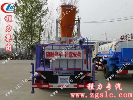 ★ 前沖后灑,帶側噴,罐體后帶工作平臺,平臺上安裝綠化灑水炮和農藥噴灑專用炮,灑水炮和農藥炮均可全方位旋轉,可連續調成直沖狀、霧狀、大雨、小雨、毛毛雨。噴藥炮霧化效果好,可遠程噴霧,射程達20米。 |